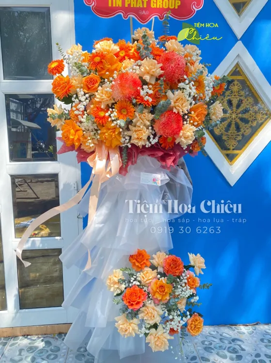 Thường thì kệ hoa khai trương rất được ưa chọn để lựa chọn sử dụng chúc mừng ngày khai trương. Một kệ hoa tươi rực rỡ đặt trước cổng cùng với dòng chữ chúc mừng đi kèm sẽ tạo nên sự hoàng tráng và đầy sức sống cho sự bắt đầu mới.