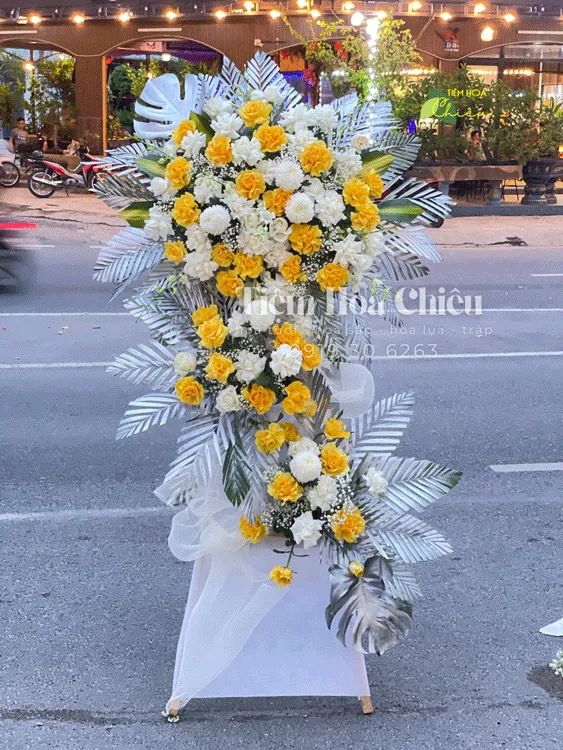 Những kệ hoa, lẵng hoa đám tang đẹp sang trọng, trang nghiêm sẽ là lựa chọn phù hợp và tinh tế. Kệ hoa chia buồn sẽ như lời chúc người mất sớm được siêu thoát về nơi vãng sinh cực lạc.